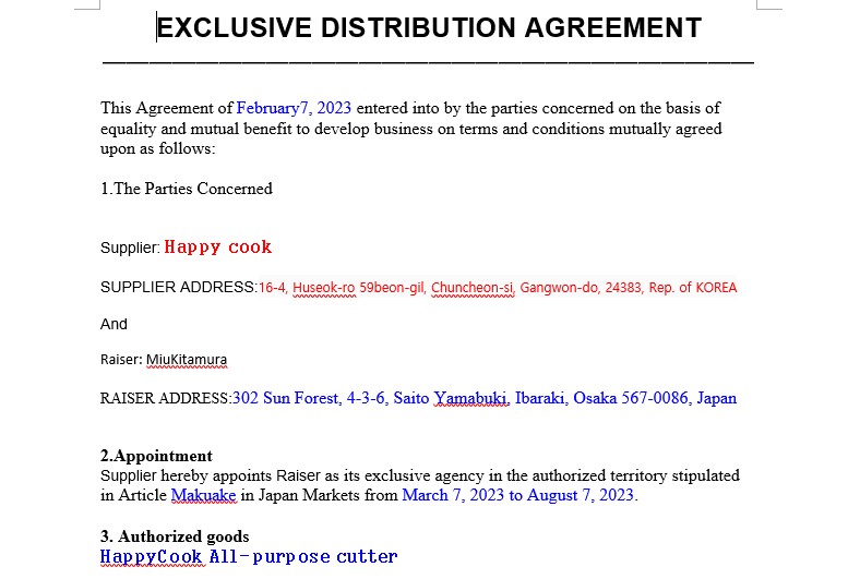 일본 바이어 계약 일부